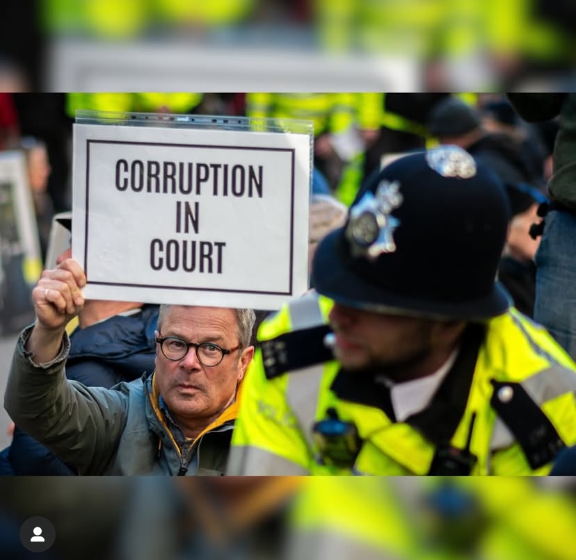 We hear voices from the protests outside of the Royal Courts of Justice, that took place on 29th & 30th January.