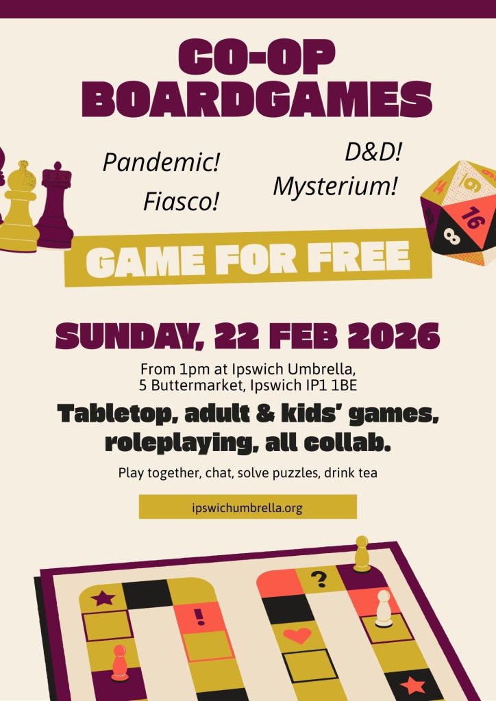 Collaborative or cooperative board games are games in which players work together to solve puzzles, overcome obstacles, reach goals or tell stories together. Some of these, like 'Pandemic', involve moving pieces on a board, while others are card games ('The Mind'), use tokens ('Sleeping Gods'), pens and paper ('Dungeons and Dragons'), or just conversation ('Year After Year' and hundreds of other tabletop role-playing games).