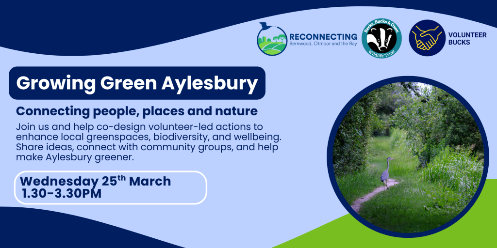 Join us to be part of an exciting conversation about Growing a Greener Aylesbury – Connecting People, Places and Nature at our in-person workshop on Wednesday 25th March 2026 at 1.30- 3.30pm