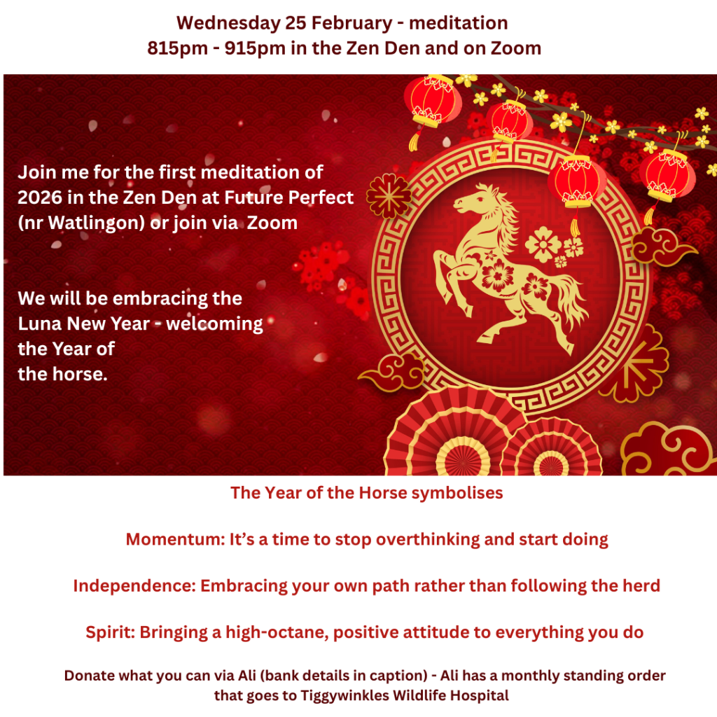 Join me for the first meditation of 2026 in the Zen Den at Future Perfect (nr Watlingon) or join via Zoom