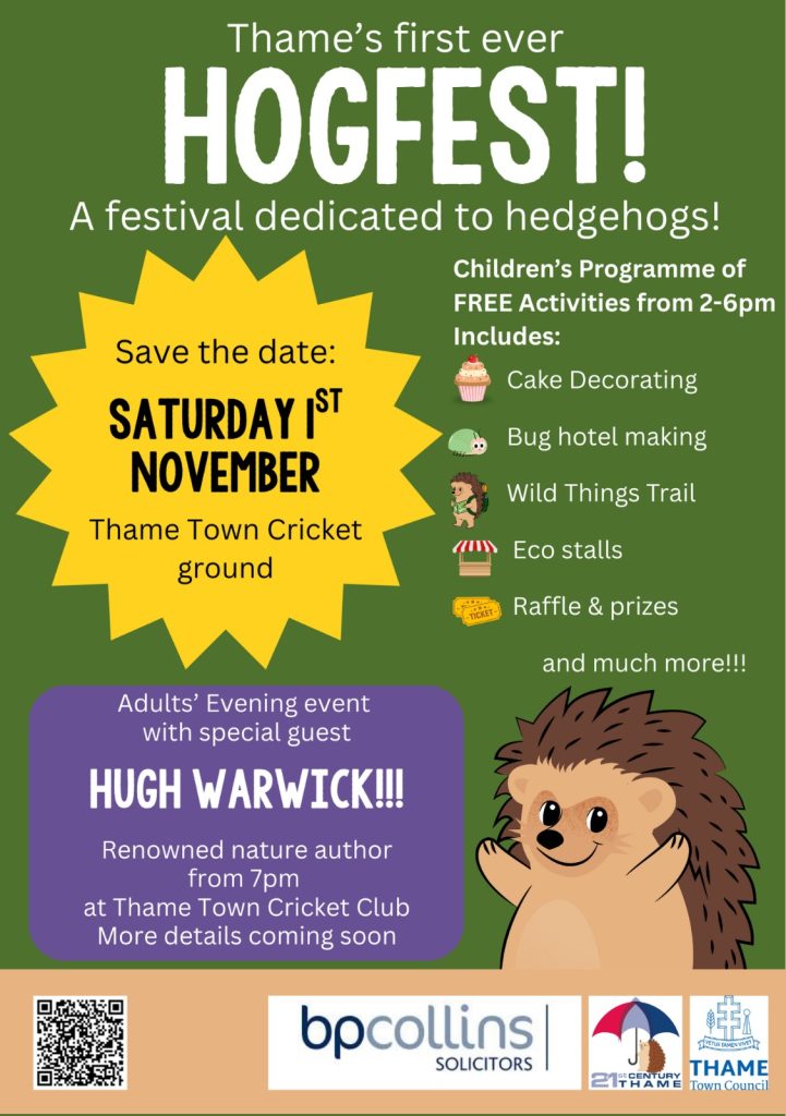 For information about the day : https://21stcenturythame.co.uk/2025/09/29/first-thame-hogfest-a-festival-of-hedgehogs/.