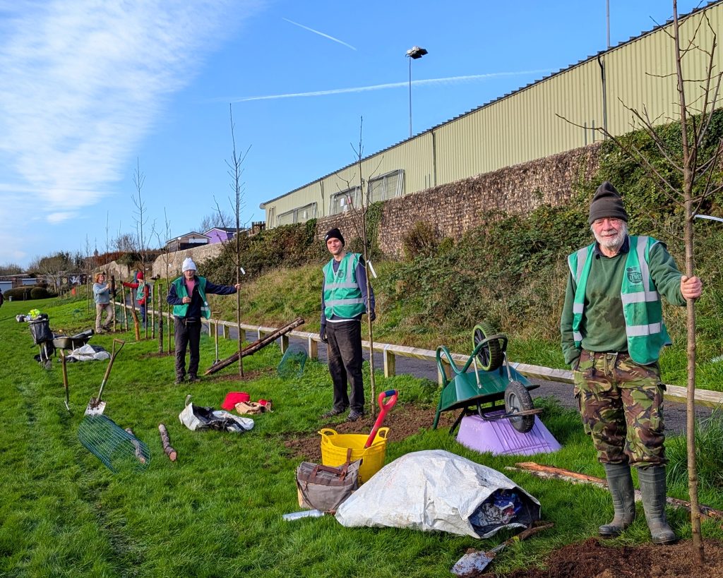 The trees are an interesting mixture of native and non-native climate-resilient species that will contribute towards our goal of increasing tree canopy cover in Lewes and create an additional green corridor between the Railway Land and Priory Park.